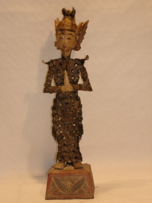 en bois, avec une masque argenté de Bali, décoré avec feuille d'or, 54x14 cm