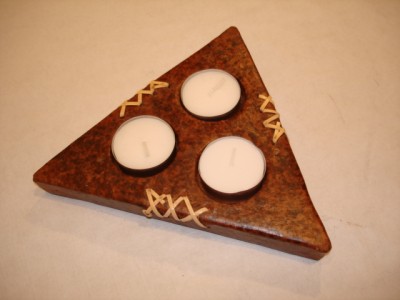 en pierre de savon 20cm x 6cm, soutient 3 bougies