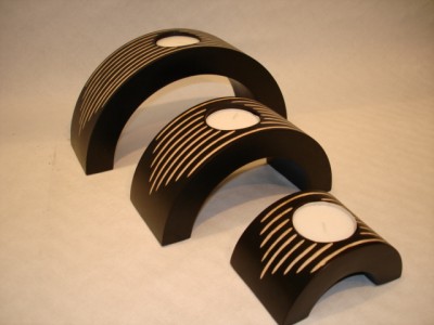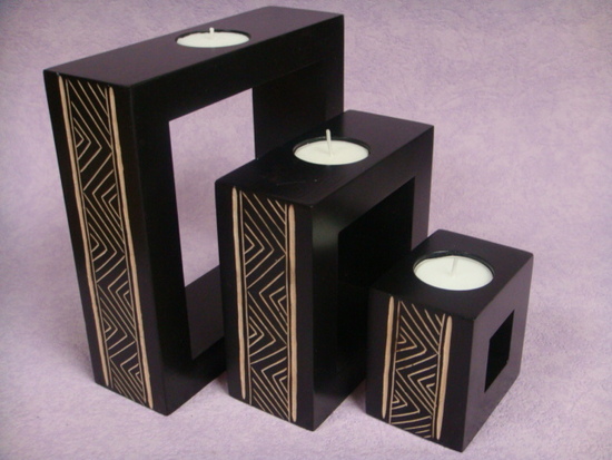 en bois de mangue, sculpté avec un dessin abstract (12cm - 9cm - 6cm - 4,5cm)