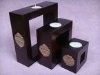 bougeoir rectangulaire pour 3 bougies décoré avec du bambou