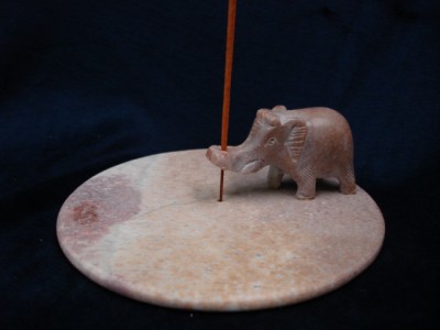 en pierre de savon, sculpté à la main, éléphants, 24x8 cm