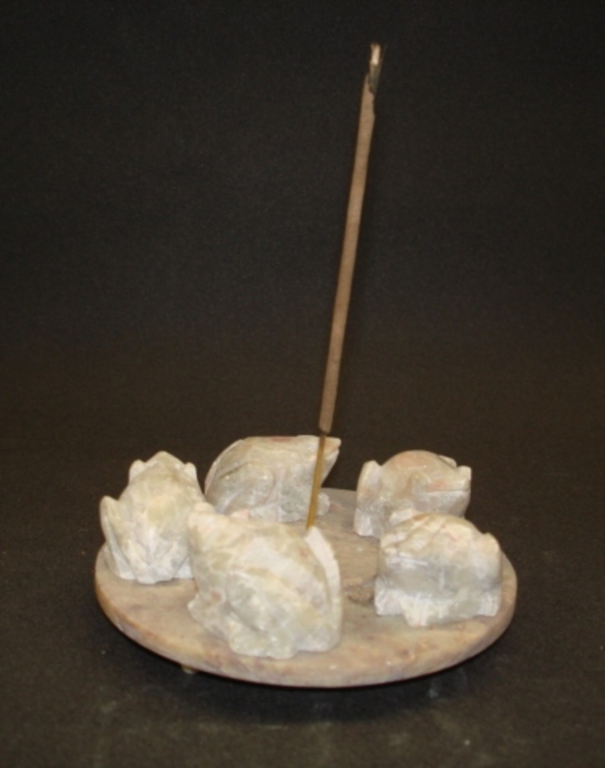 porte encens en forme de carreau avec gecko et décoration de rotin